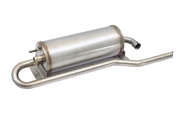 該消音器使用汽車發(fā)動(dòng)機(jī)尾氣排放消音,主體采用不銹鋼結(jié)構(gòu),該消音器采用水冷消音雙系統(tǒng),對(duì)尾氣進(jìn)行消音的同時(shí)對(duì)其進(jìn)行冷卻,降低尾氣的排放溫度,防止尾氣燙傷;